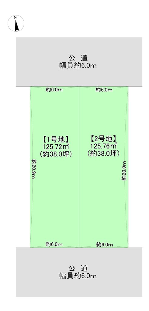 | 土地面積 | 1号地:125.72㎡、2号地:125.78㎡ |